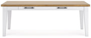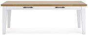 - 2-tone finish (white finish; butcher block oak veneer top with natural finish)